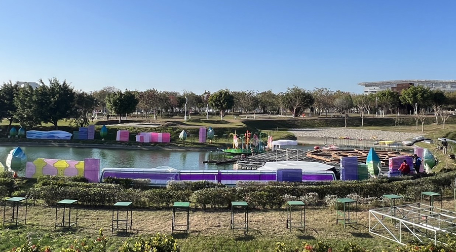 圖說3:各燈區的燈組陸續於中央公園進場趕工中。(記者彭勝郎攝)
