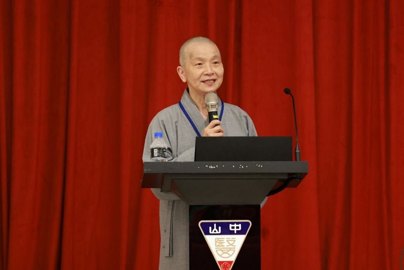 2023年12月9日,德悅師父於「2023全人醫療靈性照護國際研討會」闡述臨終關懷對生命的價值與意義。(攝影章宏達)