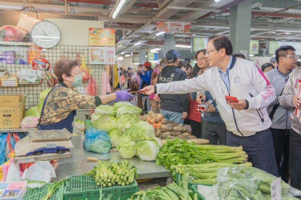張善政說明,為貼近市民朋友需求,購買年貨禮包可透過線上及實體的方式,線上購買年貨禮包的民眾將取得兌換券,可至桃園各大公有市場兌換購買。桃園將在1月24日至28日在中壢A22老街溪站旁廣場、2月1日至5日在桃園藝文廣場舉辦年貨大街展售會,匯聚各式年貨商品並舉辦一元競標、滿額抽獎、龍寶專屬禮各項活動,充滿濃厚年節氛圍,歡迎市民朋友來桃園逛年貨大街,也期待新年大家「龍」來桃園。