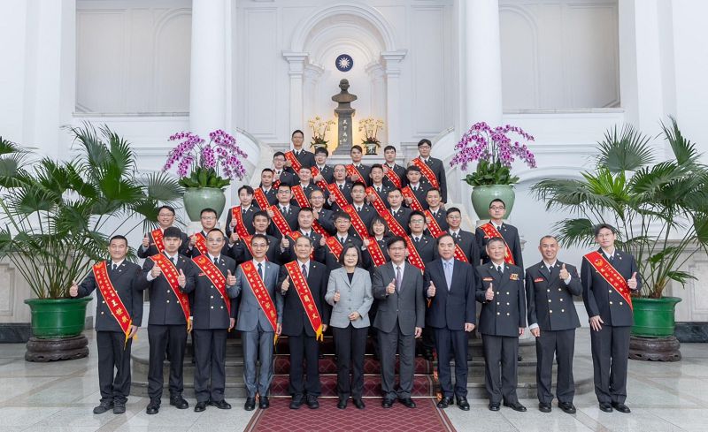 【記者范家豪屏東報導】屏縣府消防局特搜大隊隊員林家右及義消總隊顧問(前義消第四大隊大隊長)黃明典榮獲112年「鳳凰獎」消防及義消楷模,兩名得獎人平時對於各項救災救護工作具備冒險犯難、捨我其誰的精神,得獎人於113年1月16日獲總統蔡英文接見,蔡總統除祝賀得獎人之外,並表示再過幾天就是「119消防節」,她要向全國的消防、義消、防火宣導、救護以及災害防救的志工說一聲「消防節快樂」,得獎人隨後再至行政院接受院長陳建仁頒獎表揚合影留念。