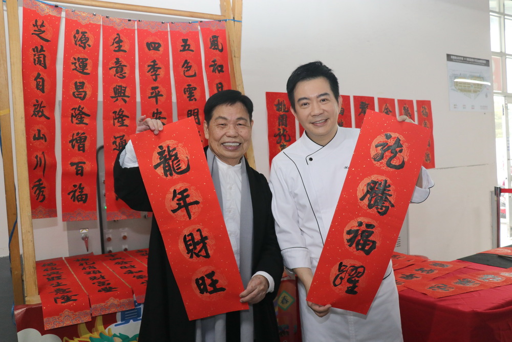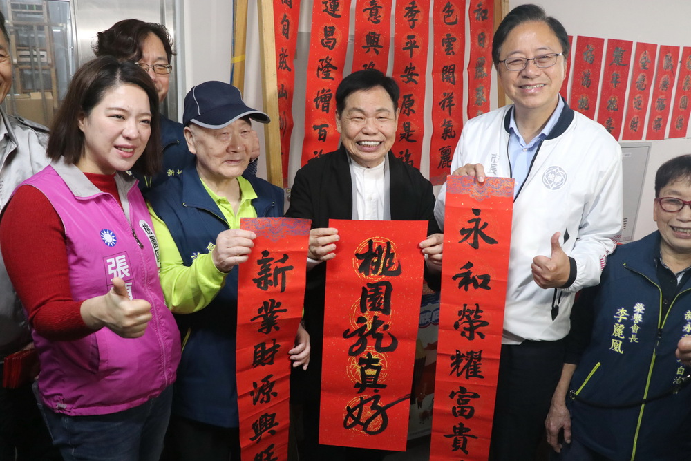 【記者鍾陽正桃園報導】桃園市政府為迎接113年農曆新春佳節,除串聯全桃園各大公有市場推出年節特色禮包及在中壢A22老街溪站旁廣場與桃園藝文廣場舉辦年貨大街展售會外,特於日前上午在桃園區新永和市場舉辦「2024桃園年貨大街宣傳記者會」,邀請桃園市書法學會榮譽理事長陳綠文現場揮毫寫創意春聯,並在平鎮山豐國小老師郭瑞玲協助下,開放50份號碼牌供民眾免費索取,不但讓民眾能近距離欣賞書法大師揮毫風采,亦能攜回過年貼春聯,招財納福旺整年。現場壯觀場面,吸引許多人駐足圍觀,提前感受濃濃年節氛圍。