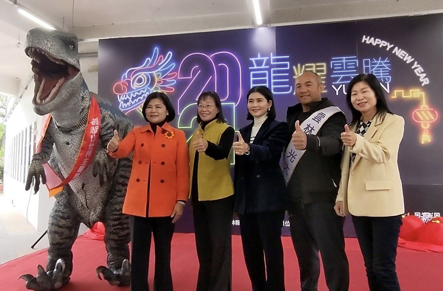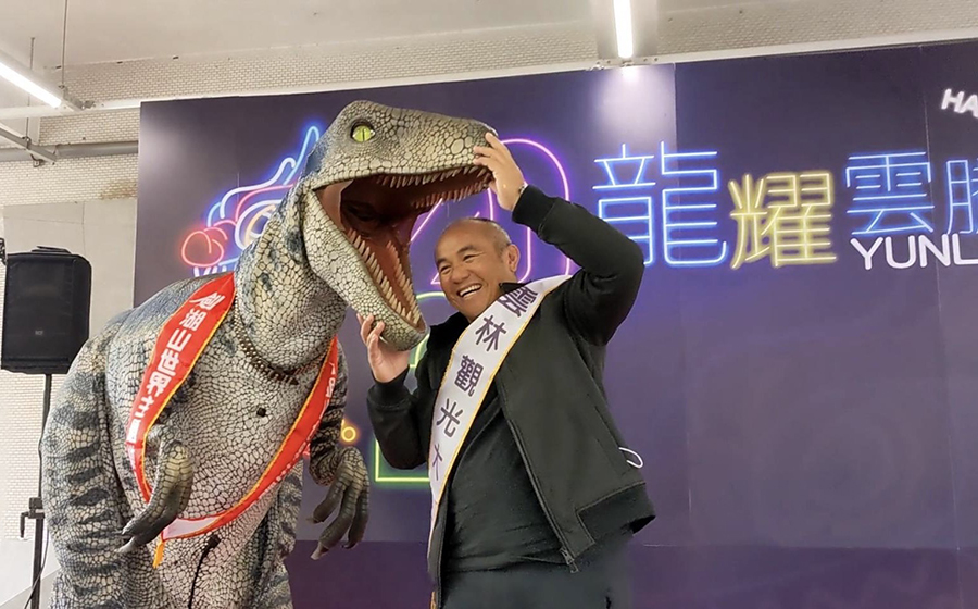【記者蘇榮泉雲林報導】22日有民眾在路上看到野生的恐龍紛紛感到詫異尾隨其後,發現恐龍往大學路上的文化處圖書館裡去了?劍湖山世界經理張華紋表示,雲林「2024龍耀雲騰記者會」,特別帶著劍湖世界的迅猛龍來跟雲林縣觀光大使「森林王子」張泰山和味全龍小龍女啦啦隊一起同樂,以及寒假開始了,迅猛龍來送幸福給大家,歡迎大家來慢遊雲林,加碼推出「龍來一定發」。