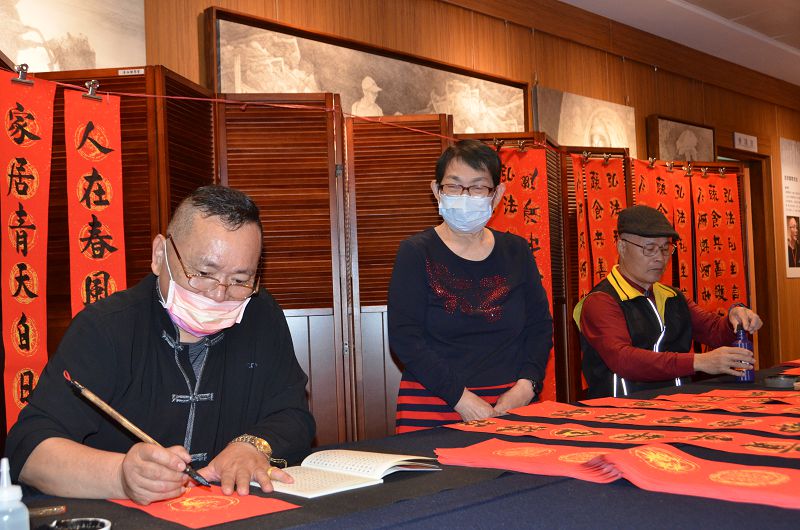 在清水靜思堂,慈濟邀約照顧戶到靜思堂參與聯歡活動,感受年節的氣氛。志工準備毛帽、圍巾、手套、襪子等保暖織品,現場還有書法老師揮毫,讓大家帶著春聯、西式餐點回家。