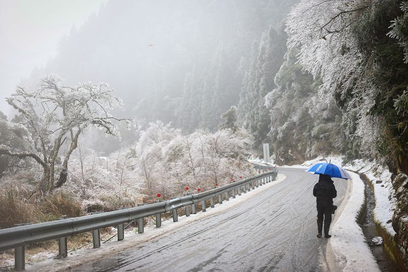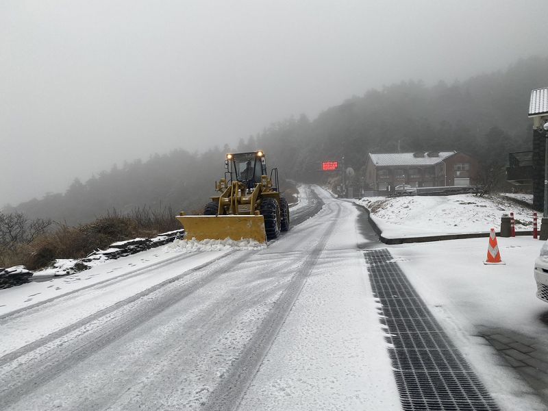 宜蘭縣太平山國家森林遊樂區、海拔約2000公尺的思源埡口、南投合歡山等地今天凌晨下雪,武嶺與松雪樓上午成白色世界,積雪約2到3公分;太平山莊前廣場變身一片雪白世界。
