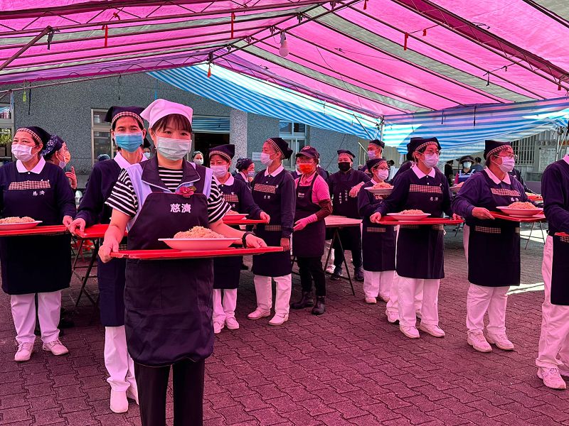 宜蘭慈濟冬令發放圍爐活動,志工營造過年氛圍,安排了義剪區、春聯區、二手用品區、奉茶區、卡拉OK、古箏演奏等各種攤位,圍爐時還有摸彩活動、靜思書軒小志工手語表演、古箏和薩克斯風演奏,讓照顧戶們提早感受過年的歡樂氛圍。活動後領取年節物資與冬令物資卡,帶著象徵「平安、吉祥」的蘋果、橘子歡喜賦歸。