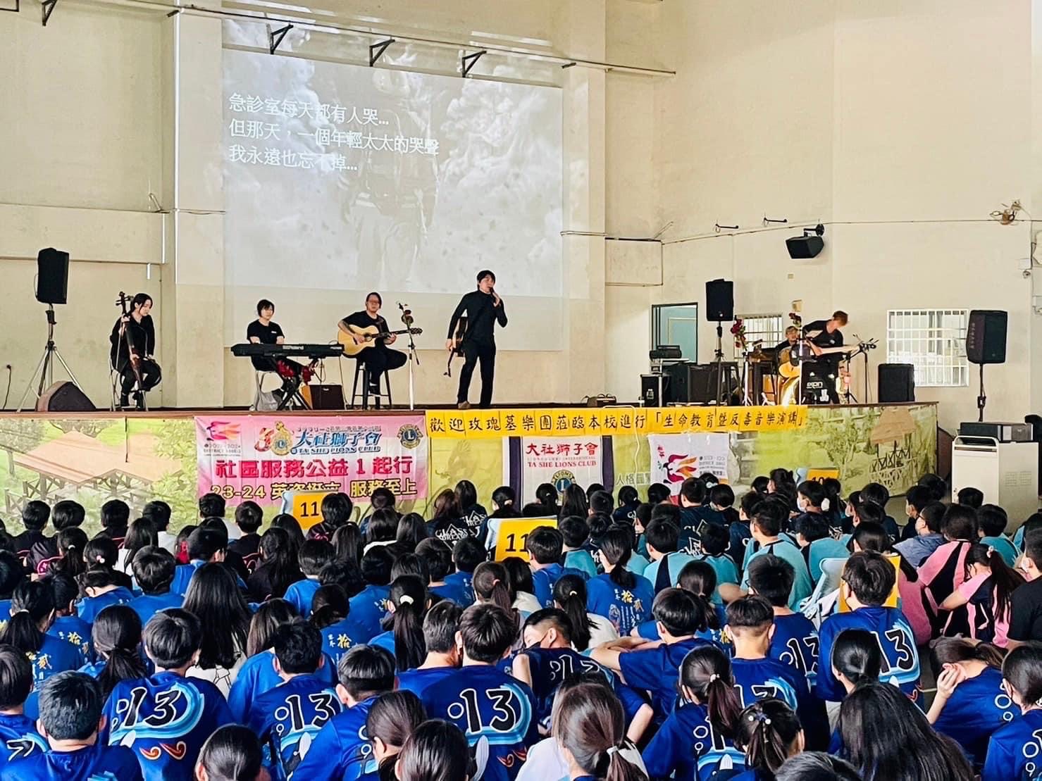 【本報綜合報導】大社獅子會第三十屆會長蕭仲平與楠梓國中高宏上校長攜手合辦,並由高雄市家長協會與高雄市楠大會長助學協會一同協辦,在楠梓國中舉行這場非常有意義的生命教育暨反毒搖滾音樂饗宴。蕭仲平會長秉持善的循環,讓持續社服更落實於在地,讓所有學生與嘉賓萌發更廣的真善美。音愛生命,珍惜生命。