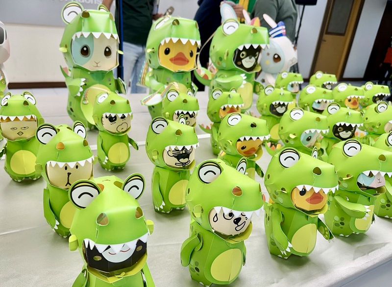 小提燈設計師林佳葦說,本次設計概念是以變臉娃娃的結構創意為發想,創作出可變換臉部表情的有趣提燈,設計以Q版卡通造型的恐龍站姿,置入可四面翻轉的立方體,並連結與高雄相關的角色IP,讓提燈更具趣味,就像是穿著恐龍偶裝道具服的公仔一樣,陪民眾一起過元宵。