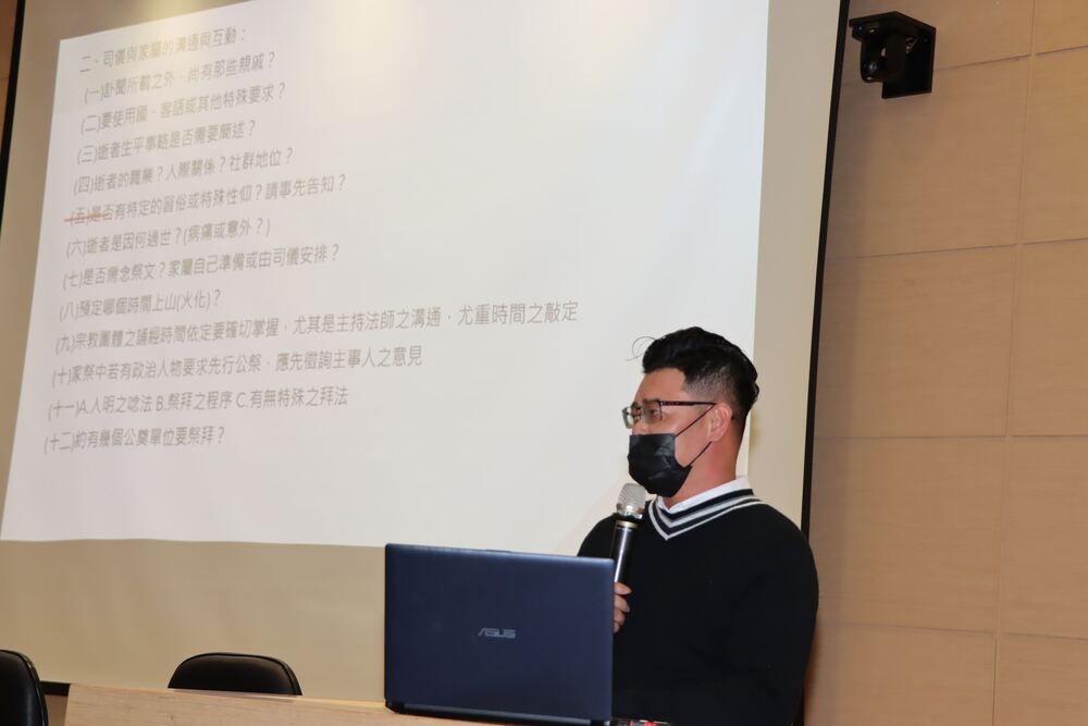 民政處處長巫恒昭表示,這項訓練課程公告後即引起熱烈迴響,原規畫40位參訓名額,未料各方詢問電話不斷,報名情形踴躍,甚至鄰近縣市新竹市、桃園市的禮儀服務業從業人員也紛紛詢問是否可以跨區參訓,經主辦單位不斷追加人數,最後增額至60位,足見大家對於將母語結合傳統喪儀議題的關心。
