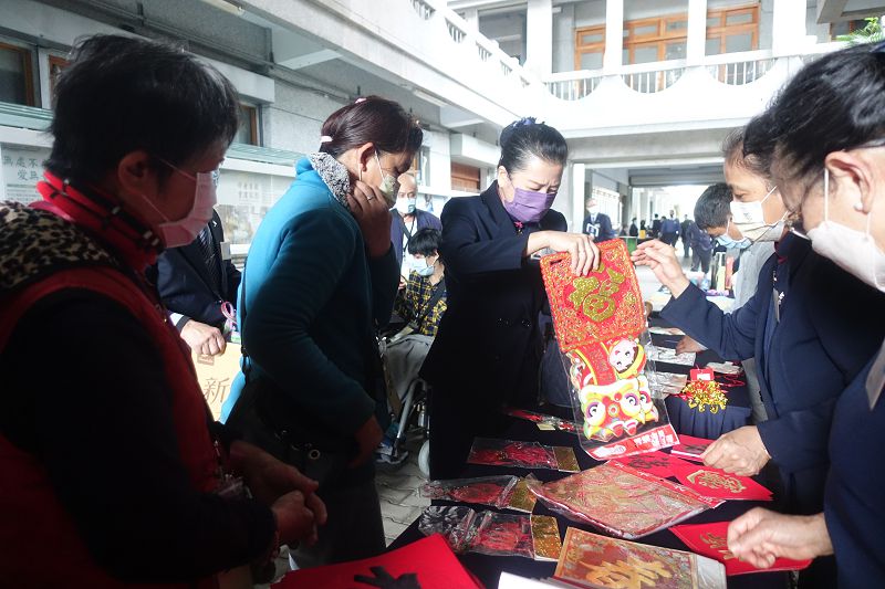 2月2日慈濟全台最後一場冬令發放活動在靜思精舍圓滿,志工準備春聯讓照顧戶提前感受年節氣氛。