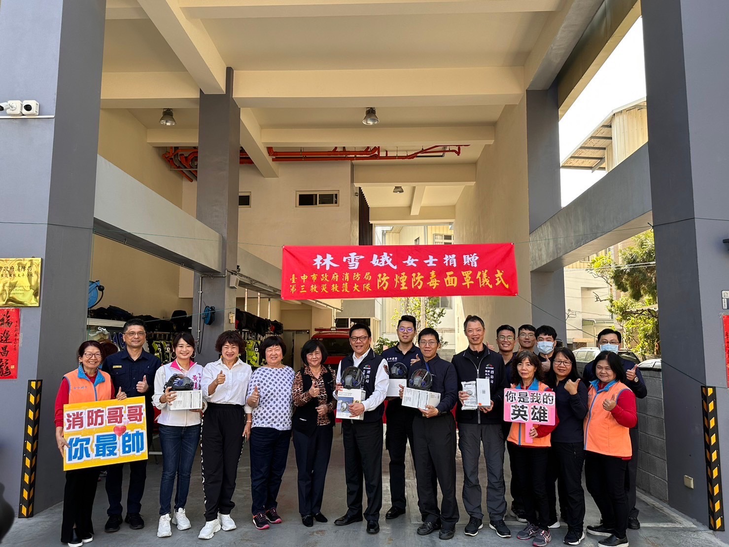2日上午9時30分許,在市議員黃佳恬及前議員李麗華女士的穿針引線下,在市警察局太平分局太平派出所、市消防局第三救護大隊太平消防分隊舉辦捐贈儀式,捐贈警方「隨身微型秘錄器」27組、「充電式活動長排警示燈」12組,由太平分局長廖誌銘;另捐贈防煙防毒面罩及配件30組,由消防局第三大隊大隊長詹仁傑代表受贈,。