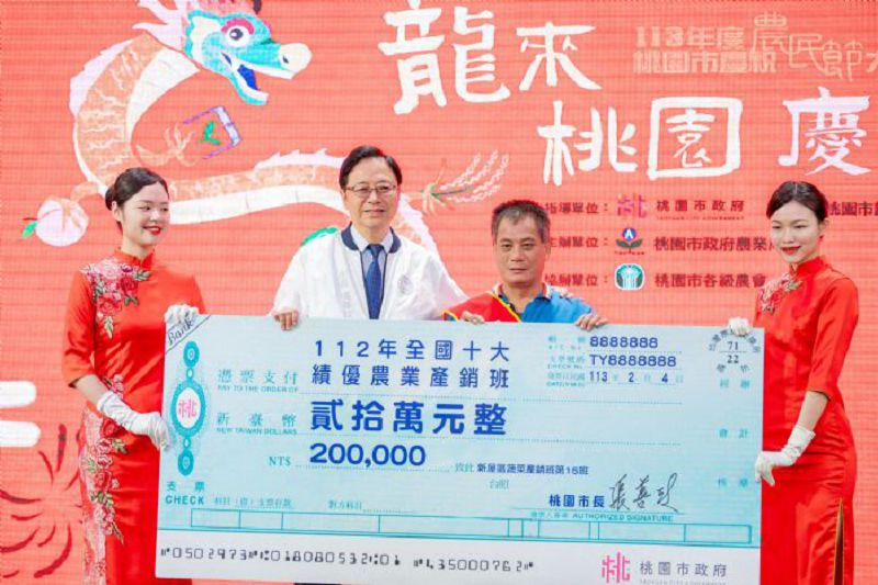 張善政談到,桃園農業的傑出事蹟不勝枚舉,舉例來說:廖文金、廖俊融父子經營的「尚好茗茶」榮獲「2023 年全國優質東方美人茶評鑑比賽」特等獎,其運用智慧農業技術,解決茶產業勞力密集、人力不足問題,是茶葉比賽的常勝軍;新屋區蔬菜產銷班第 15 班榮獲「112 年全國十大績優農業產銷班」,不僅是全臺最大的有機蔬菜班隊,也是首家整合育苗、種植、分裝、運送之「物流一條龍」產銷團隊,每日蔬菜產量達20多公噸,供應多家大型賣場及臺中以北的學校營養午餐。