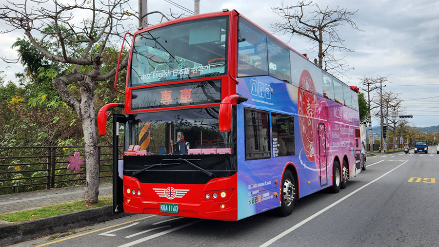 市府客委會表示,雙層巴士接駁點規劃於「豐原轉運中心第6月台」及「東勢河濱公園公車亭」上下車,屆時將成為台三線的吸睛焦點。雙層巴士採全預約制,將帶領遊客從不同的視野體驗山城風光,乘客於「東勢河濱公園」下車後,可沿路暢遊文化街等東勢街區巷弄,品味道地客家美食。