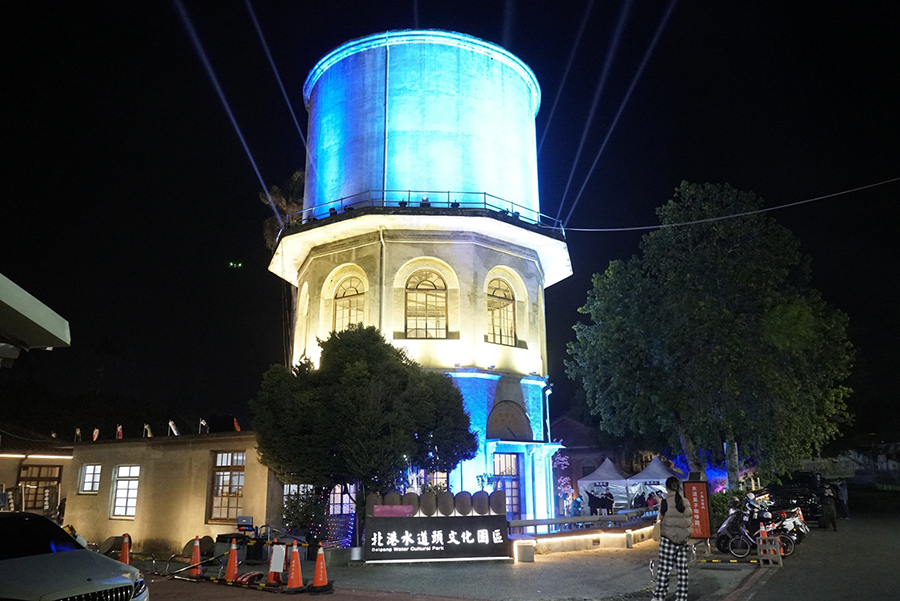 圖3說:水道頭文化園區十角水塔是古蹟和歷史建築也是北港重要的文化資產,是燈會的一大特色所在。(記者蘇榮泉攝)
