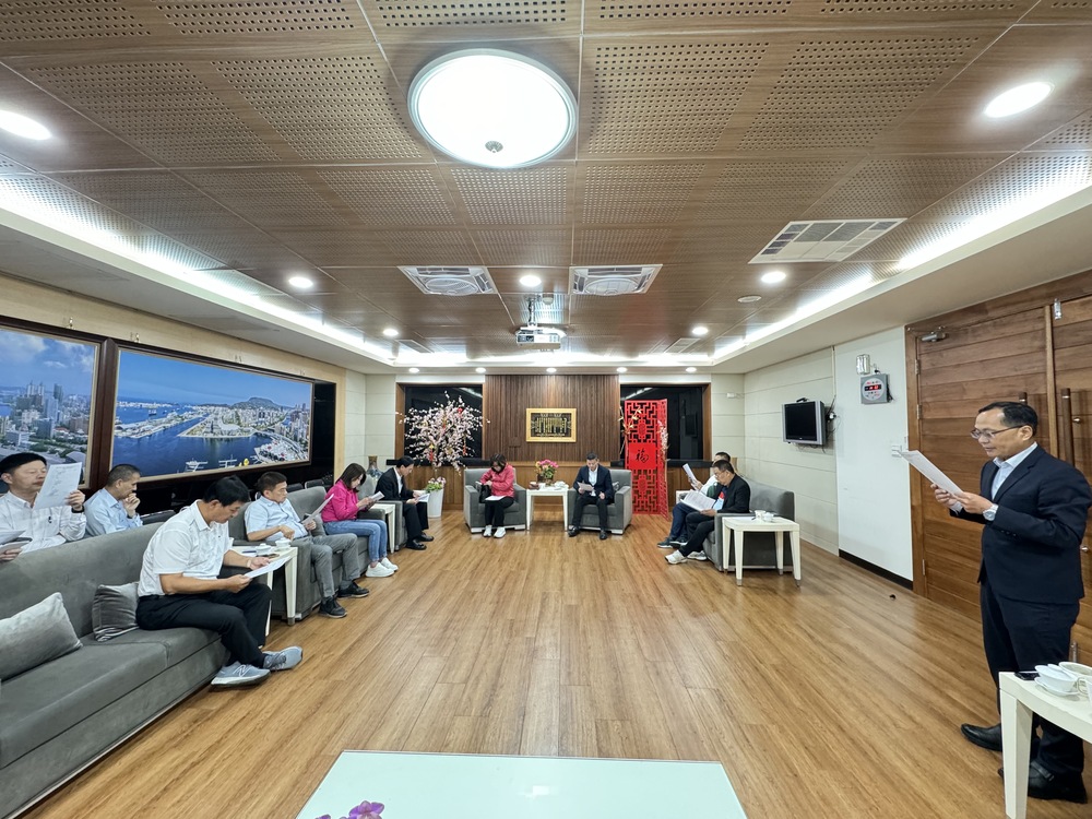 隨後,康議長、曾副議長偕同黃文志議員、黃錦平秘書長及余潮駿副秘書長向議會全體同仁拱手互道恭喜,問候新春快樂,期望金龍年議會能越來越好。