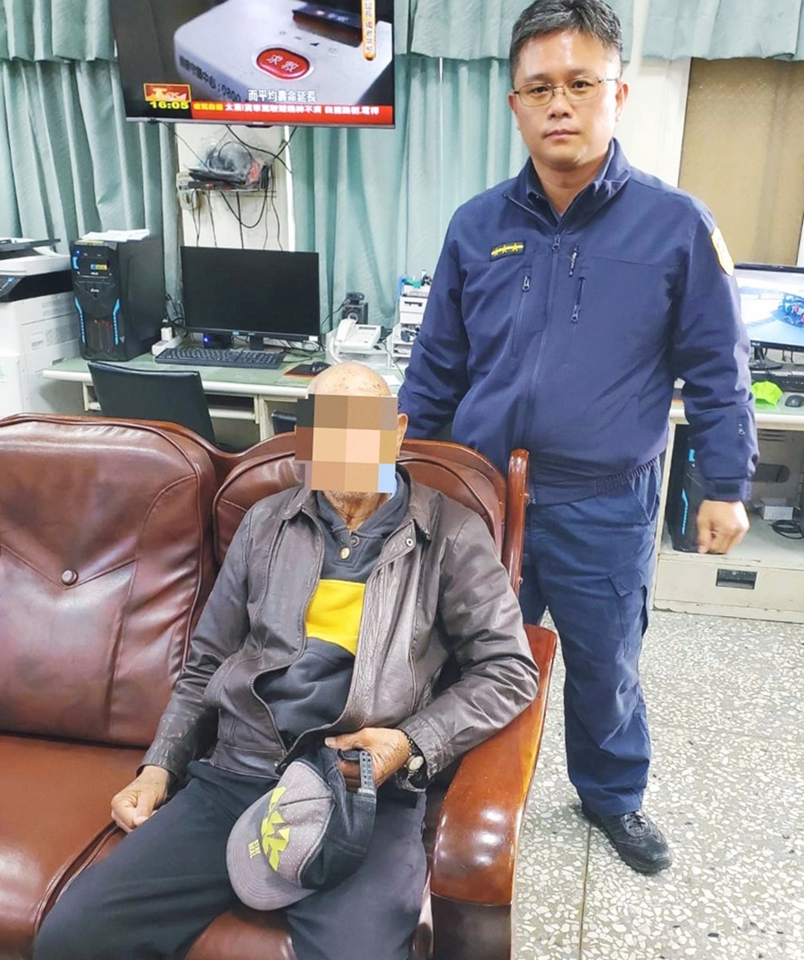 【記者雷琇雯雲林報導】北港警分局口湖聯合所警員蘇福將日前執行交通稽查勤務時,在口湖休息站廁所前發現1名年邁的長者呆坐該處,由於當時天候寒冷,老人家身體直顫抖,員警關懷詢問其身分時,老翁並無法清楚表達,幸虧員警眼尖,在老翁身上找到駕照,經查詢後確認為失蹤人口,便立即通知家屬已尋獲老翁的訊息,讓家屬放下心中大石。