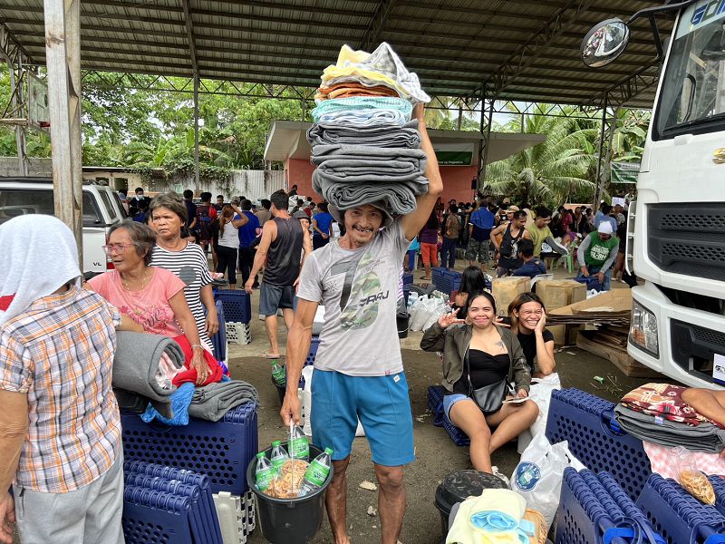 菲律賓納卯地區慈濟志工清晨從市區出發,前往災情較嚴重又比較偏遠的Barangay Magupising Municipal Dujali, Davao del Norte 發放。每戶發放的物資包括:20公斤大米、礦泉水、美祿、即溶麥片、水桶、香皂、洗衣皂、浴巾,毛巾、拖鞋、T恤、點心、福慧床與毛毯。