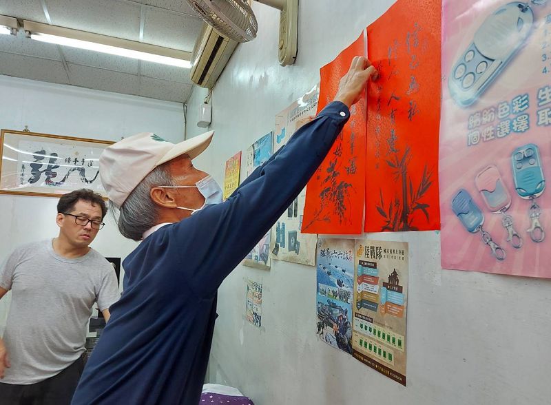 「老闆,請問要不要貼靜思語春聯?」志工舉高手中靜思語春聯讓對方看,有時店家會搖手拒絕;有時店家會點頭,幾位志工趕緊向前,讓他挑選想要的好話。「這家要貼四張。」每年都參與貼送靜思語春聯的志工,哪些店家需要換貼都很清楚,即便是原本貼靜思語春聯的位置,現在空蕩蕩的,也能清楚知道張貼位置與張數。