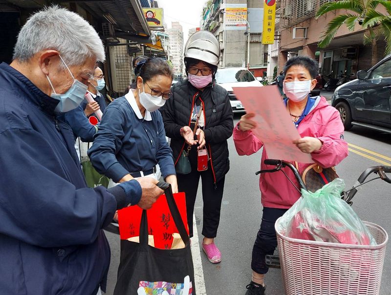 農曆新年前,各地慈濟志工紛紛上街為店家換貼或送上靜思語春聯,讓靜思語好話傳遞正向能量。新北市板橋區後埔十位慈濟志工,帶著靜思語春聯和愛心竹筒,沿街向店家傳遞祝福,同時也啟發人人的善心善念,行善造福,一人一善,就可以遠離災難,愈多人來行善造福,我們的臺灣也就會愈平安。