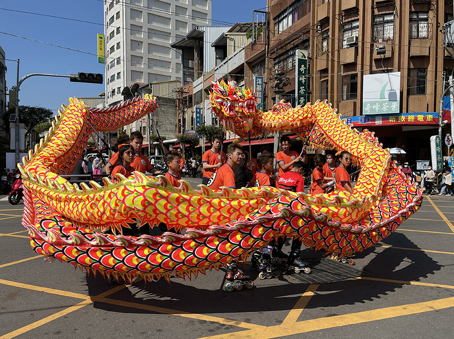 【記者彭勝郎台中報導】台中市政府客委會主辨的新丁粄節24日在東勢客家文化園區、台中客家故事館、東勢文化街區同步登場,一連兩天逗元宵節熱鬧滾滾,一早20多組特色踩街團隊在街區盛大踩街,客家園區展館內展示120斤超級新丁粄龜粄與桃粄,成為焦點。