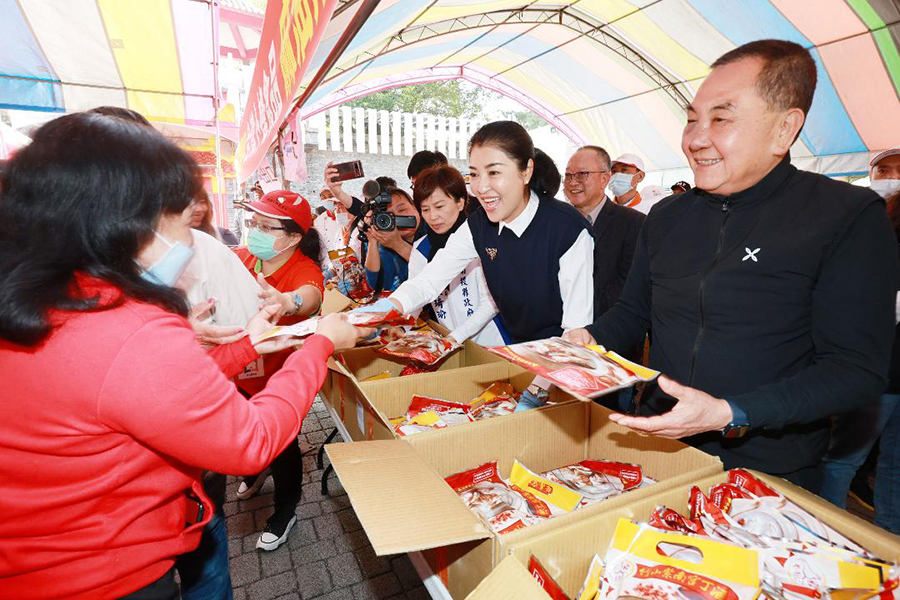 【記者陳良安竹山報導】竹山紫南宮年度盛事「呷平安丁酒」活動,25日上午在紫南宮水濂瀑布前停車場隆重登場,一早就湧入約2萬人排隊等候,前來領丁酒料理包的民眾絡繹不絕,人潮持續湧入會場,前來拜拜祈福和借發財金民眾也擠爆廟埕廣場,場面相當壯觀;上午9時「 吃平安丁酒」 活動準時開鑼,由縣長許淑華、紫南宮主委莊秋安及台灣卜蜂企業股份有限公司資深副總裁張維岳一起分送丁酒料理包給民眾,民眾依序排隊領取,秩序井然,場面熱絡。許縣長希望民眾越吃越有福氣,莊主委表示此次共準備6萬包葷食丁酒,1萬份素食料理,送完為止,盼讓信眾都能平安順利。