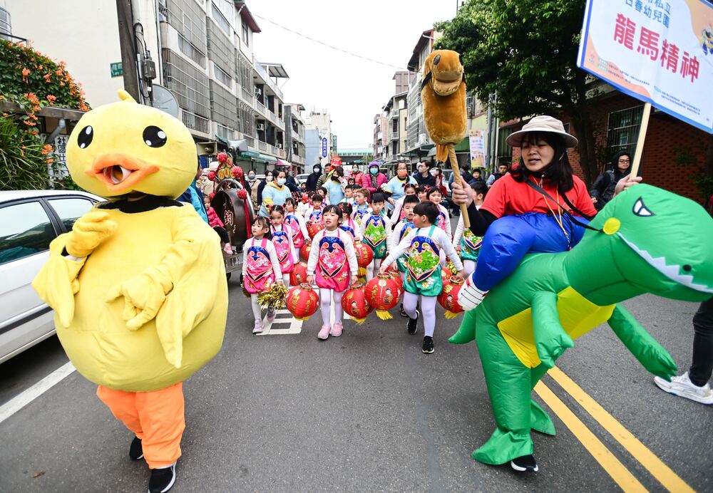 此外,市府客家局也特別以街舞結合客家八音參與表演,促進客家文化的傳承與創新,延續龍潭傳統文化活動。今日迎古董踩街嘉年華特別邀請戊己劇團以「官將首」營造正氣磅礡氣場,以及聖毅龍獅團隨踩街隊伍表演應景的舞龍舞獅,並由龍潭區吉祥物龍寶引領踩街隊伍出發,祈求活動順利成功。