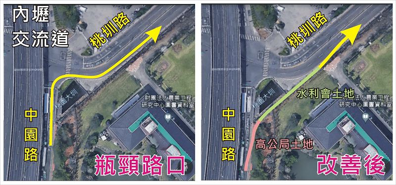 交通局長張新福表示,中壢區桃圳路因當年開闢時需保留桃園大圳之清淤作業空間及與中園路(內壢交流道)交岔路口銜接路型,致中園路往交流道方向欲右轉桃圳路之轉彎動線過小,影響車流紓解。歷年來地方皆有提出加蓋剩餘大圳空間做為道路使用之建議,經評估考量仍有保留桃園大圳之清淤空間之必要,故交通局提出「利用中園路及桃圳路旁既有公有地新闢右轉專用車道」規劃方案,透過增加供給的手段提高車道紓解效率並減低車流交織及壅塞。