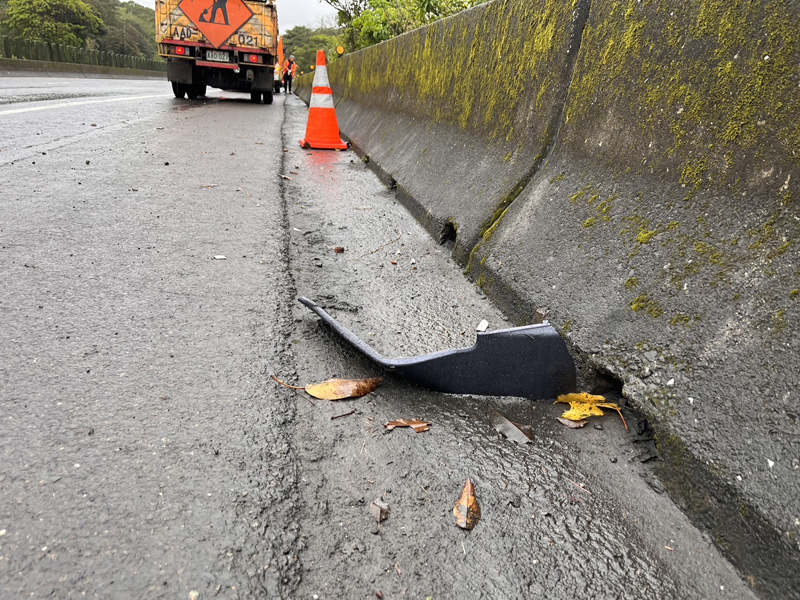 台62線道路上留下被撞機車的碎片。(記者張毅翻攝)