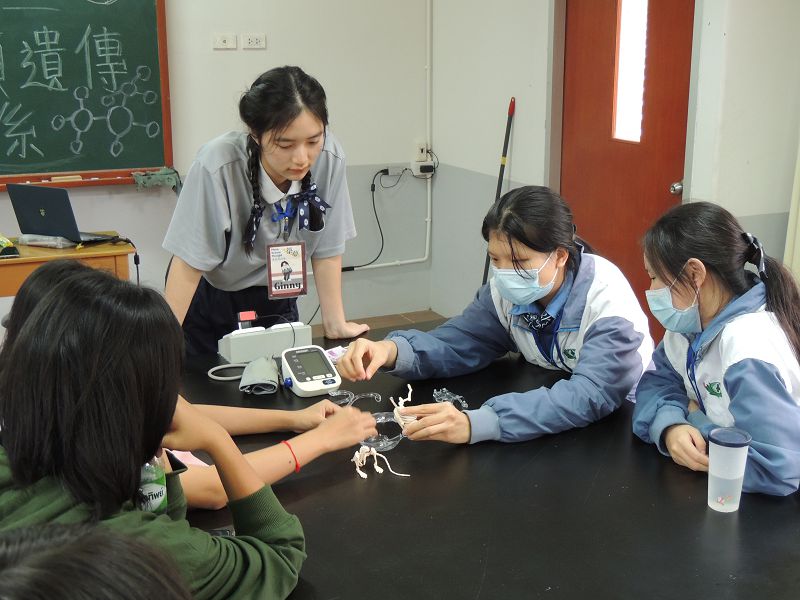 學群探索過程中由醫學檢驗生物技術學系一年級蔡金妮帶體驗活動。