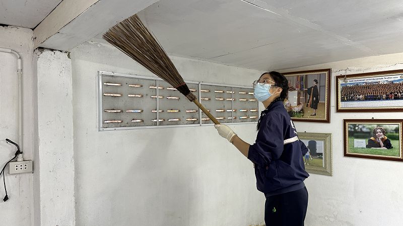 而在志工服務活動中,我們跟著清邁慈濟的師姑師伯,一起去學校旁的村莊進行訪視,共分兩組,我們這組關懷的對象,大多是獨居長者,與台灣訪視不同的是,我們在贈與物資時,要一位位同學拿著物資,恭敬呈給長者,並擺出來一一核對,進入屋內時,也一定要脫鞋,無論屋內是否整潔,師姑都教我們應尊重當地文化,脱鞋進入室內。