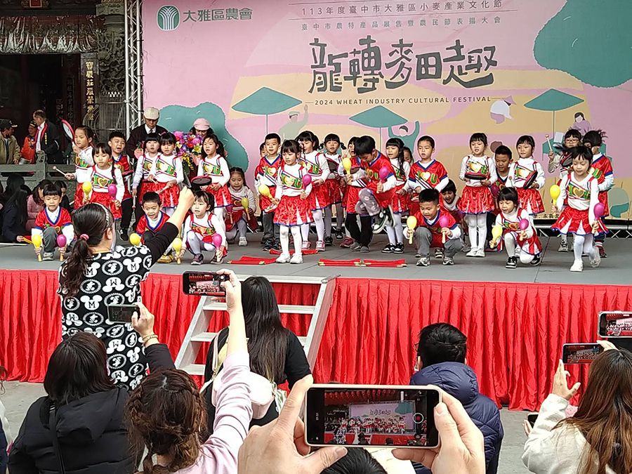 【記者王雲彬、馬淑娟台中報導】小麥是大雅區重要農作物之一,每年種植面積約119公頃,是國內最大面積的麥田景觀區,113年大雅區小麥產業文化節「龍轉麥田趣」於2日在大雅區寶興宮前廣場隆重登場,現場除有「龍轉麥田趣」為主題的麥田裝置藝術外,更有熱鬧的節目表演、各區農會農特產品展售和親子手作等精彩內容。