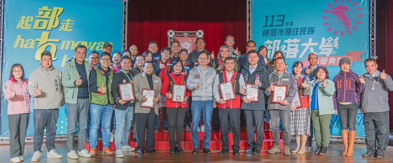 【記者吳艾芸桃園報導】桃園市長張善政日前在原住民族委員會泰雅族委員羅恩加、市議員王仙蓮、林志強、張秀菊、蘇偉恩、市府原住民族行政局局長陳姿伶、婦幼局副局長陳先琪、教育局專委林光偉、大溪區長徐景揚、市總族群領袖森國斌、市副總族群領袖江添才、朱萬義、林欽明、堂光明、原住民族協進會龍潭區主席林信辰、財團法人桃園市原住民族發展基金會副執行長尤天鳴、多位部落大學顧問及訪視與課程發展委等人陪同下,前往大溪區出席「113年度桃園市原住民族部落大學開學典禮」。
