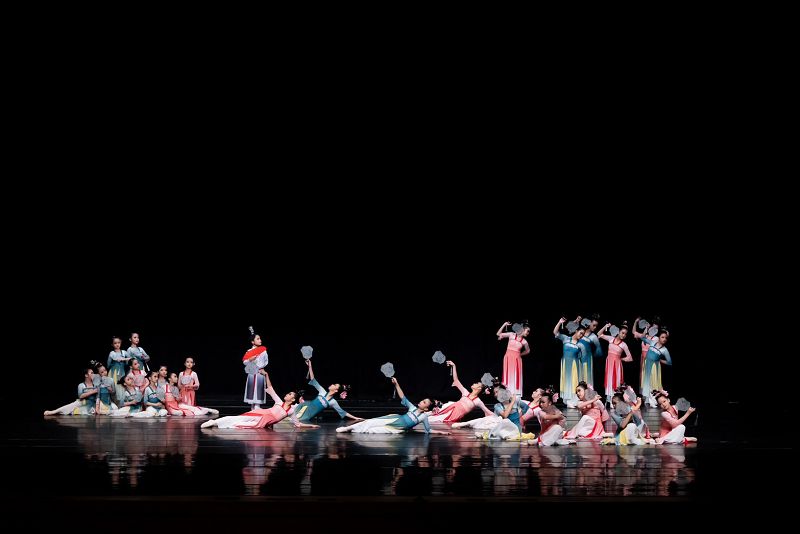 今年慈大附中國小、國中、高中同時以古典舞進軍全國賽,小學的「河畔青蓮」、「遲日江山麗」及國中的「酹江月」三支舞碼融合了慈濟人文之美,舞者以精湛的舞姿,加上情感的詮釋、音樂與身韻的結合,配合彩巾、飄扇、水袖及摺扇等不同道具的展現,呈現出每支古典舞的多元樣貌。小學部的「遲日江山麗」,參賽學生從小學三年級到六年級,整支舞碼以漢唐時期為背景,小小年紀透過高雅的身韻展現出漢唐盛世繁華似錦的樣貌;國中的「酹江月」,由藝才班舞蹈組全體學生共同呈現,透過舞蹈的編排和音樂的轉換,將詞中所蘊含的意義呈現無遺;而高中部的「陌上塵」則有別於國中、小學兩支舞碼,更著重力與美、舞蹈技巧的展現。對於沒有舞蹈班的慈大附中而言,孩子如何藉由不同的動作轉化,展現情緒上的差異,實屬不易。