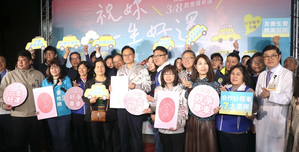 張善政提及,市府團隊克服困難,努力讓各項籌備工作一一到位,包含撇除傳統紙本申請方式進行補助,與悠遊卡股份有限公司合作發行「一生好運卡」專卡,也感謝悠遊卡股公司支援1,000台車機予計程車隊使用,更感謝新梅、新利達、台灣大車隊、大都會、大文山、大豐、合作等7大計程車隊超過3,500台友善計程車加入服務陣容,提供桃園孕產婦女們貼心的照顧服務,也希望孕媽咪都能向合作計程車隊預約叫車服務。