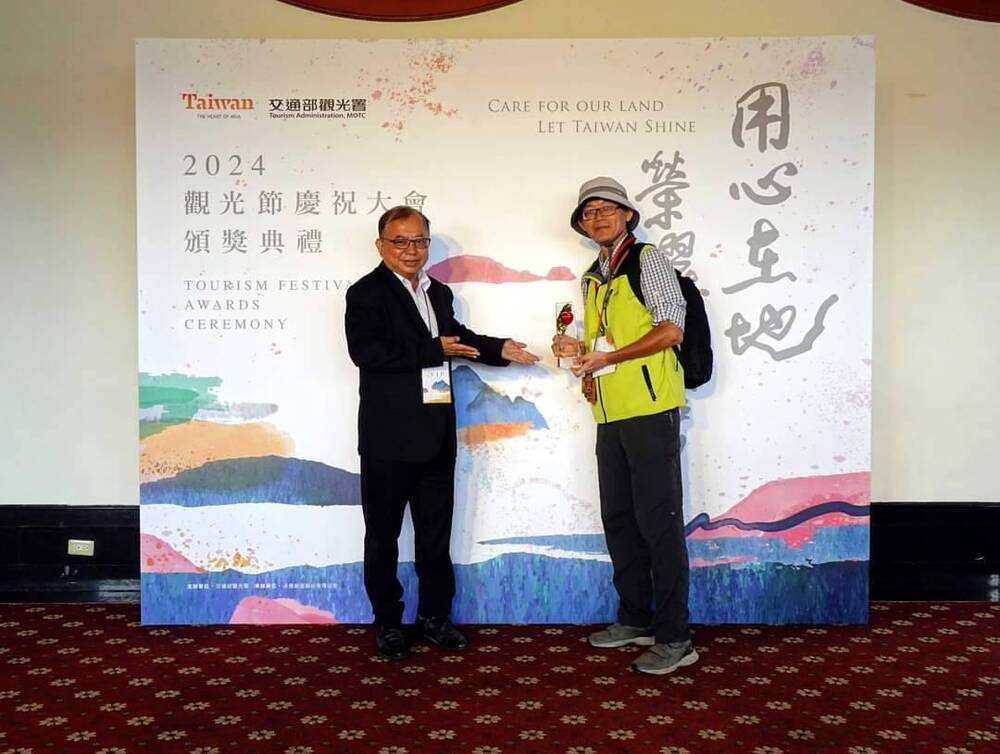 【記者彭勝郎台中報導】交通部觀光署日前舉辦「2024觀光節慶祝大會」特別頒獎給5位「台灣觀光之友,」表彰長期協助推動台灣觀光發展的國內外人士。獲獎人中最特別的是參山國家風景區管理處推薦的臺中市霧峰觀光大使陳永進,參山處長曹忠猷指出,擁有電機博士學位的陳永進老師離開亞大教職後,致力於推廣「單車小鎮旅遊」,免費領騎來自全國各地的遊客,藉由自行車騎遊的視角體驗認識的霧峰家鄉以及中部各縣市各具特色的鄉鎮市,真正落實「越在地越國際」發展在地產業永續旅遊精神,而且長期推廣自行車成為「最後一哩路」低碳旅遊的新趨勢,無私貢獻值得表揚。