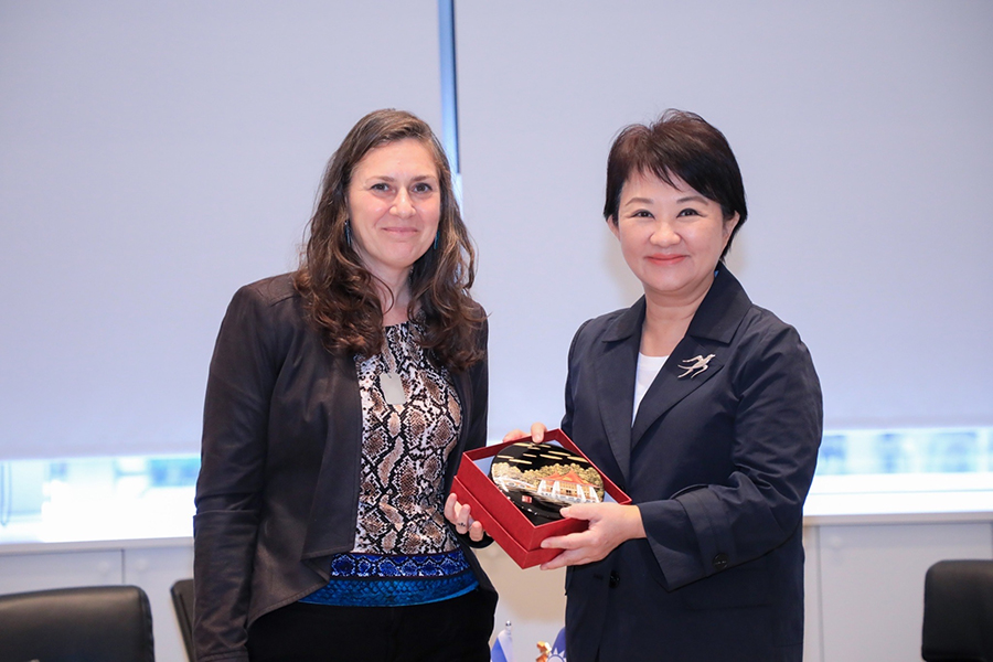 駐台北以色列經濟文化辦事處拜會,盧市長致贈湖心亭漆藝禮盒、梨山高山茶。游瑪雅代表則回贈以色列特產初榨橄欖油,現場互動熱絡。盧市長、副市長黃國榮、秘書處長謝佳蓁、環保局長陳宏益、經濟發展局長張?源、文化局長陳佳君、教育局副局長王淑懿、觀光旅遊局副局長陳育正等均出席交流。