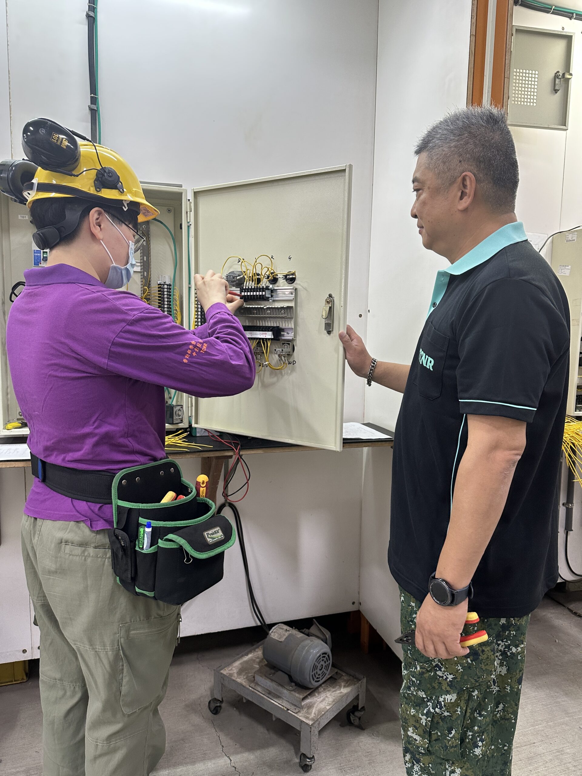 小橘分享,中分署的訓練非常紮實,女孩子可能一開始會嚇到,但堅持下去,也可以跟男生表現一樣好!上完水電課程,同時具備屋內屋外配管、配線、配電識圖與操作能力,工場內設有電線桿可直接上桿實戰練習,結訓後取得室內配線丙級、乙級、自來水配管丙級等3張證照。