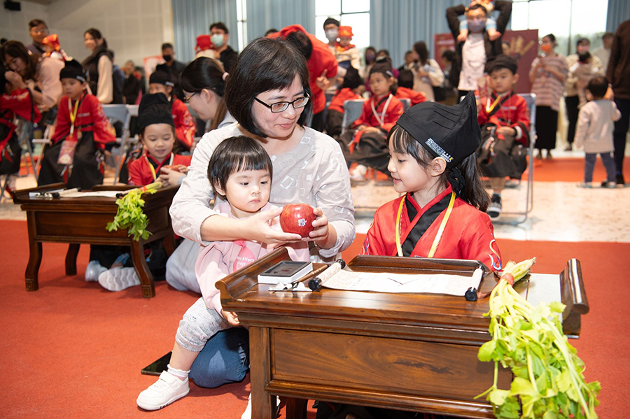 【記者張朝福嘉義報導】第六屆「城隍佑民·文昌護子」公益古禮抓週暨文昌「開筆禮」活動,由云享文創『遊Love園親子館』主辦,嘉邑城隍廟與中華全齡教育協會協辦,福添福社會福利基金會贊助,10日共有40組家庭齊聚嘉義市兒童福利服務中心參加這場活動。今年更首創「文化溯源、開筆明慧」學童開筆禮的儀式,讓即將就讀小學一年級的莘莘學子穿著古裝,依循古禮,完成啟蒙儀式,獲得城隍爺與文昌帝君的庇佑,黃敏惠市長擔任啟蒙老師為孩子們點硃砂,並發送龍年限量開運小紅包,祝福每位幸福嘉人們都能「龍光煥發,好運攏總來」。