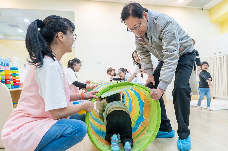 善政長表示,桃園市人口成長快速且年輕遷入人口不斷增加,為讓家長放心打拚,市府致力提供優質托育服務,桃園民富托嬰中心是桃園市第46座、桃園區第8座公托設施,委託專業團隊「財團法人中華民國唐氏症基金會」營運管理,盼發揮照護專業及對嬰幼兒發展提出適當建議,為桃園托嬰中心樹立典範,市府也會持續充實托育設施,打造優質育兒環境,讓家長都能夠安心生養。