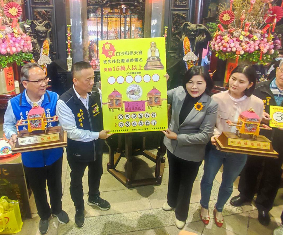 雲林至善文化協會執行長蔡銘貴表示,協會以宣揚白沙屯媽祖進香文化為宗旨,去年起只要報名信徒超過10萬人就會製作精美的交趾陶媽祖與信徒結緣,今年許下宏願若超過15萬人將再製作一尊媽祖,結果報名人數超過17萬人,協會決定加碼2頂粉紅超跑迷你神轎,並邀請縣長張麗善公開抽出得獎幸運兒。