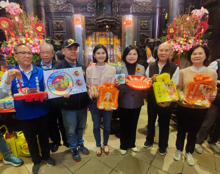 張麗善說,白沙屯媽、山邊媽進香是國家重要無形文化資產,朝天宮進香也於今年獲文化部公告為國家重要無形文化資產,每年隨香信徒不斷成長,感謝雲林至善文化協會匯集愛心,製作貼紙、環保袋、福袋等結緣品贈送給隨香民眾,今年更加碼一尊交趾陶媽祖及2頂粉紅超跑迷你神轎,公開抽獎贈送給隨香信徒。