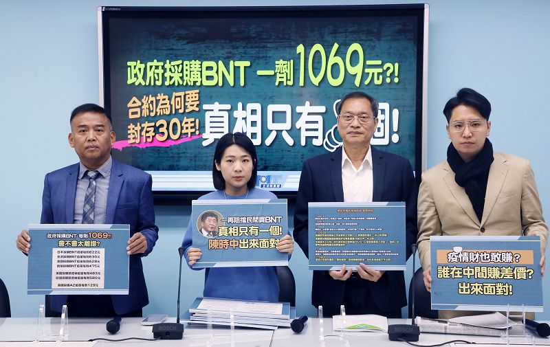 徐巧芯質疑,政府幾次採購疫苗,過程都交代不清,價格不一、說法不一,結果卻沒人負責;至今莫德納等疫苗價格還沒有公布,她要求民進黨政府不要以為時間過了,就閃過去了,應該要儘速公布所有疫苗採購合約。