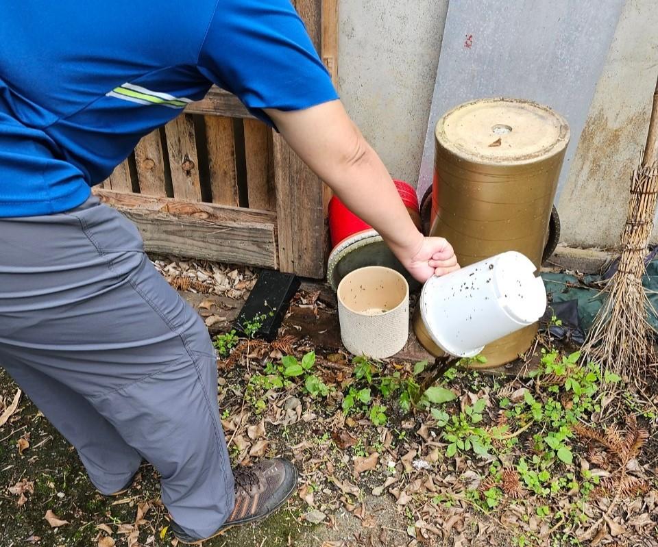 局長陳南松再次呼籲,雨後積水是病媒蚊最大溫床,提醒民眾落實環境清潔工作時,清理家園時勿穿拖鞋或赤腳,避免感染,務必疏通戶外水溝,確實刷洗並瀝乾容器,避免積水孑孓孳生。