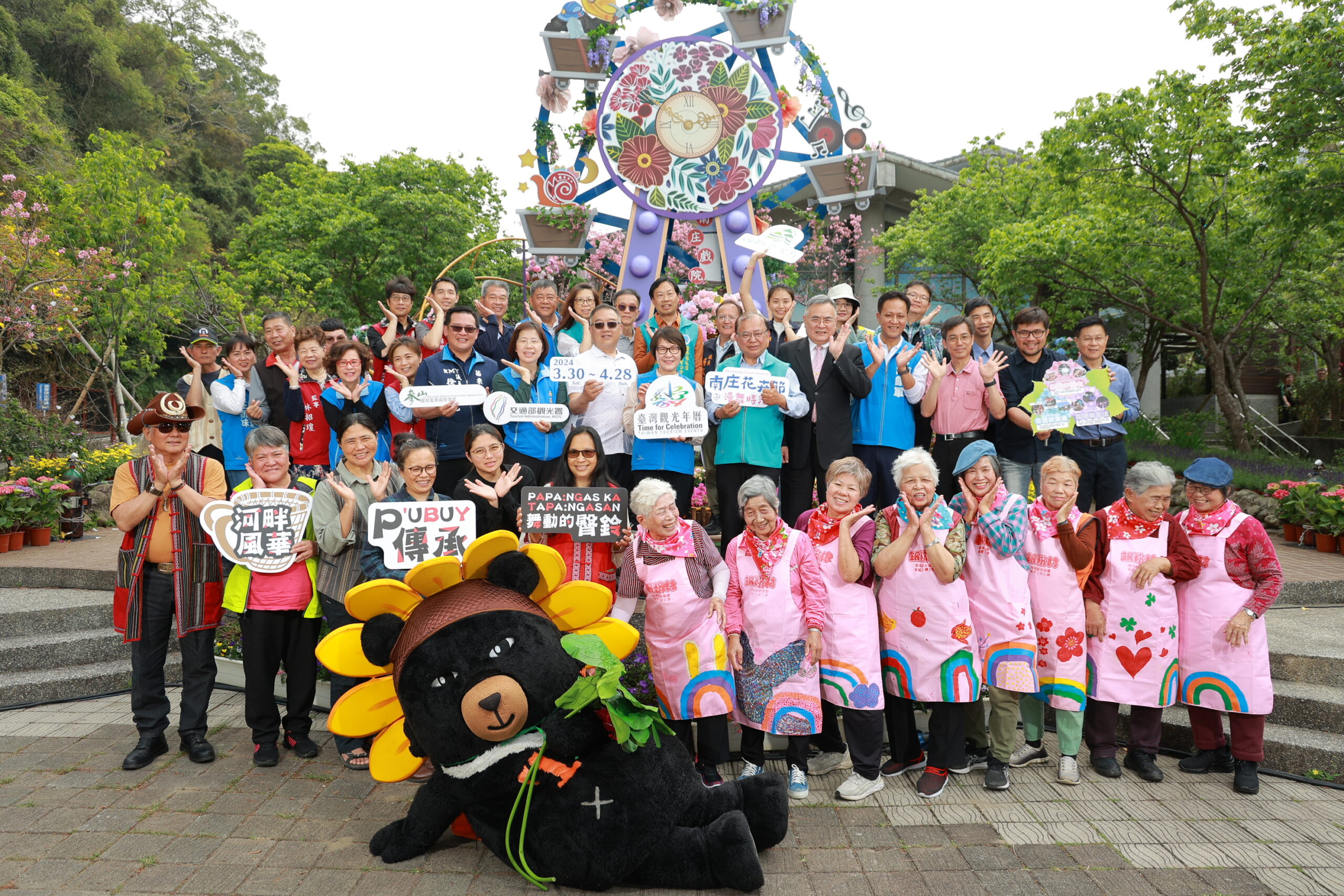 【記者林盈焜苗栗報導】交通部觀光署參山國家風景區管理處舉辦2024南庄花卉節將於本週六(30)登場,展期30天。本屆以「漫舞時光」為題,設置八公尺高的摩天輪音樂盒等共計5組花卉主題裝置藝術,分布於南庄遊客中心、南庄百年郵局與南江水岸公園等地。各裝置周遭也布置有繡球花、蝴蝶蘭、繁星花、迷迭香、瑪格麗特、英國薰衣草等多達17個品種、7千株的精緻花卉。今年更與原民工藝師共創大型弓織、臀鈴、魚背簍等3組裝置,展示於南庄的泰雅和賽夏族部落。參山處邀請遊客深入南庄巷弄及山林,觀賞參山精心布置的裝置藝術,合影同時能更認識南庄多元文化特色。