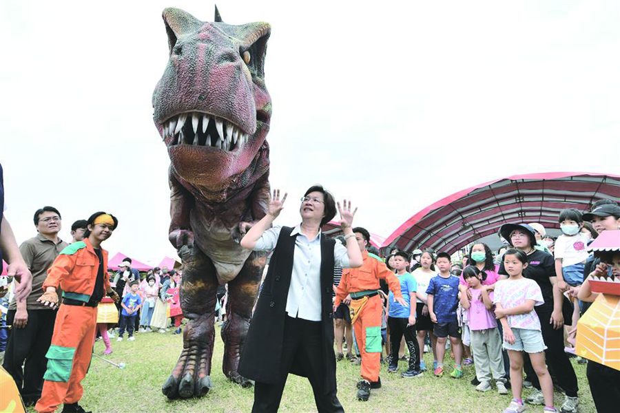 【記者鄭惠珠鹿港報導】為慶祝113年兒童節,彰化縣政府結合各局處合作舉辦兒童節慶祝活動,31日活動重頭戲「彰化囝仔好幸福-2024恐龍嬉遊記」,現場湧入三千多名親子齊聚鹿港鎮立體育場,縣長王惠美與恐龍寶寶一起與大朋友小朋友,共同提前歡慶兒童節。