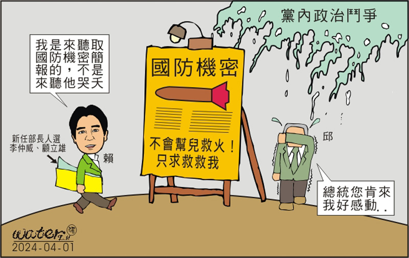 【記者劉天生台北報導】國防部長邱國正兒子召妓染黃疑雲請辭後獲總統蔡英文慰留,4/1日在立法院親上火線說明致歉表示,造成紛擾致上歉意。孩子點火要承受,家人會做他的支柱,雖然很痛,但不會幫他救火,一切依法處理。