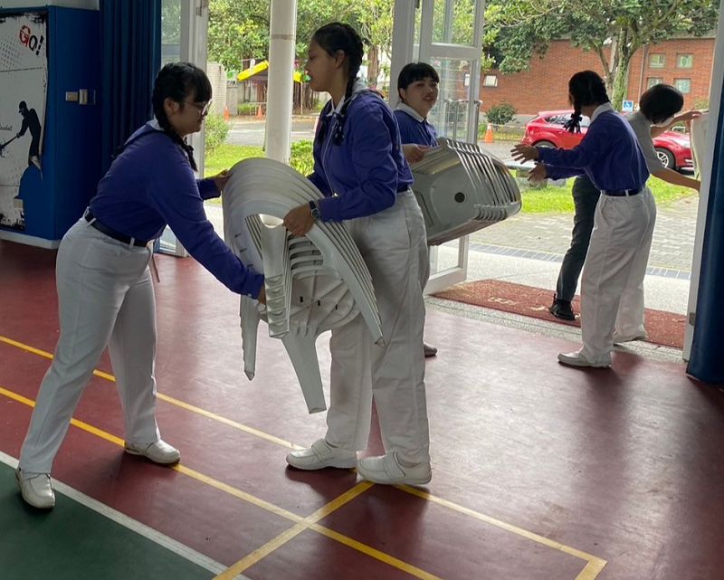 四月六日,十一位慈青社學生主動前往中原國小,協助震災後的物資發放、關懷受災鄉親的場地佈置。其中,有六位慈青全來自馬來西亞,仍處於極度驚恐的情緒中,因為馬來西亞沒有地震,壓根沒想過能搖晃到站不穩的地步。儘管已體驗過多次台灣地震,仍然被0403的7.2強震嚇到,導致外籍生不忘隨身帶著護照、防災包,卻也準備好慈青制服,隨時GO!GO!GO!