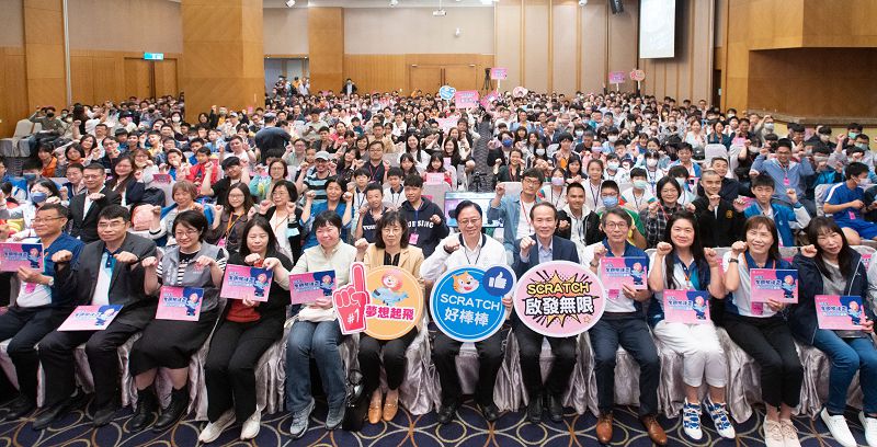 張善政進一步說明,SCRATCH是讓使用者可以透過拖拉積木方塊,用圖像方式即可撰寫程式、設計遊戲,在程式教育課程協助孩童訓練思考,故自他上任以來,也大力推動中小學科技及科普教育,期盼所有學童都能培養程式設計的專長,運用邏輯思考能力在各個領域獲得更高成就,從資訊產品的使用者發展成為應用程式的開發者,提升國家資訊競爭力。