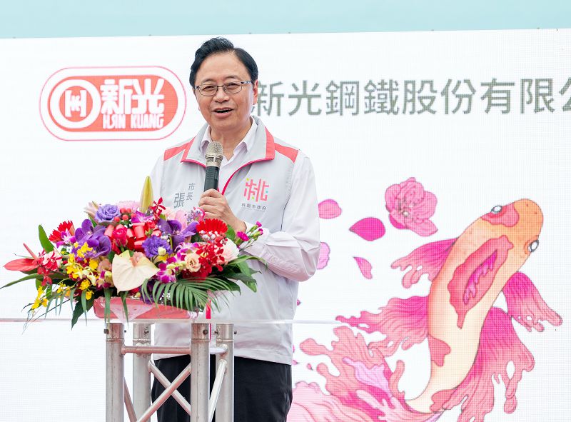 張善政表示,新光鋼鐵特別與來自美國的Karen Sue Chen及Zach Curtis二位藝術家共同合作,以臺灣的人文、自然為發想,融合創新、文化與社會責任,讓城市景觀煥然一新,相信在未來定能成為觀音新地標及打卡聖地。