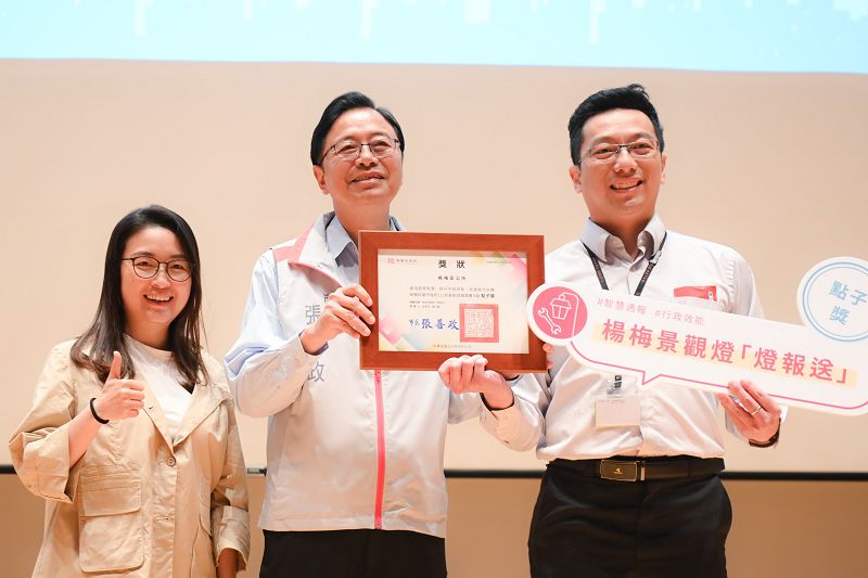 點子獎得獎作品為智發會「桃園市無程式碼系統開發平台計畫」、環管處「智慧科技運用於市容提升精進計畫」、教育局「桃園市民社會安全登錄網」、養工處「路口燈桿反光貼紙搭配路燈色溫變化試辦及驗證」、地稅局「應用數值地形模型輔助房屋稅清查作業」、新屋區公所「經費核銷電子化」、主計處「數據賦能新起點,施政成果即時通」、水務局「出流場域智慧監控,水網相連分擔逕流」、中壢區公所「利用加熱型鋪面維護車,降低道路坑洞復發率」、八德區公所「設置生態浮島,豐富生物多樣性及改善埤塘水質」、中壢區公所「利用防滑塗層提升道路雨水孔蓋安全性」、楊梅區公所「楊梅景觀燈『燈報送』」,以及蘆竹區公所「婦幼大步走、性平向前走」。