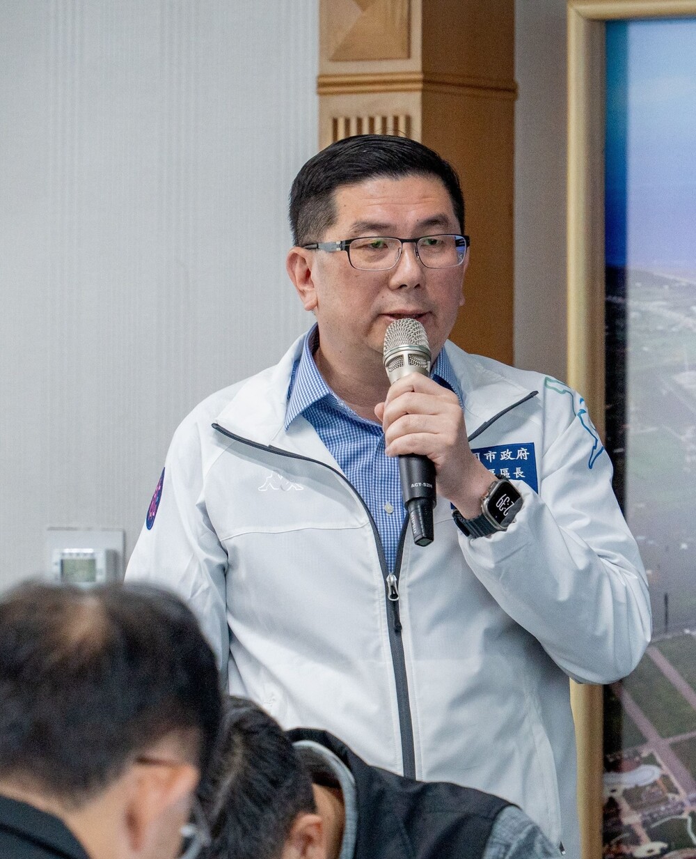 龜山區長張嘉平於市政會議進行「城市美學-藝起玩空間 推動社區美學實施計畫:龜山區示範」專題報告。